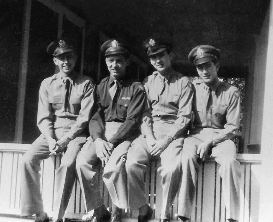 The four musketeers...(L to R) Lieutenants Bill Holbrook, Bob Rohlfing, Harry Remington Jr., and Hugh Pennington while in Pensacola, Florida during the OA-1OA transition. (Courtesy Bill Holbrook) Back to Photos page...