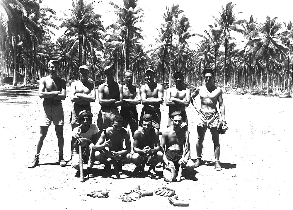 The 2nd ERS softball team. Standing third from right is Lt. Frank Rauschkolb