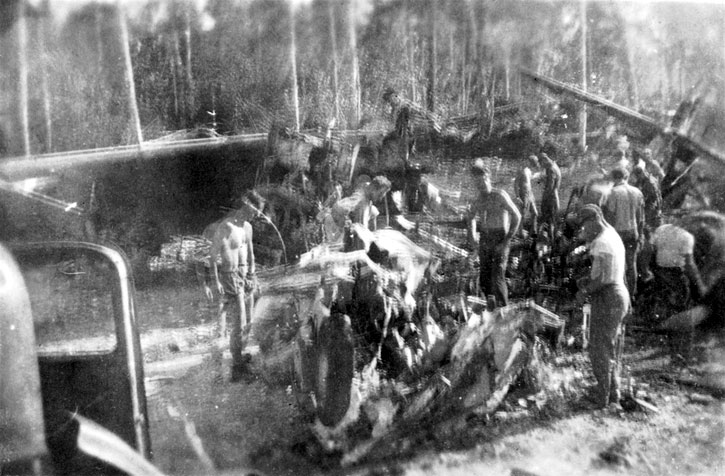 The remains of 44-33875 after a Japanese nuisance raid scored a direct hit on 26 November 1944. See more photos [photo1][photo2] (Courtesy Anne Morton)