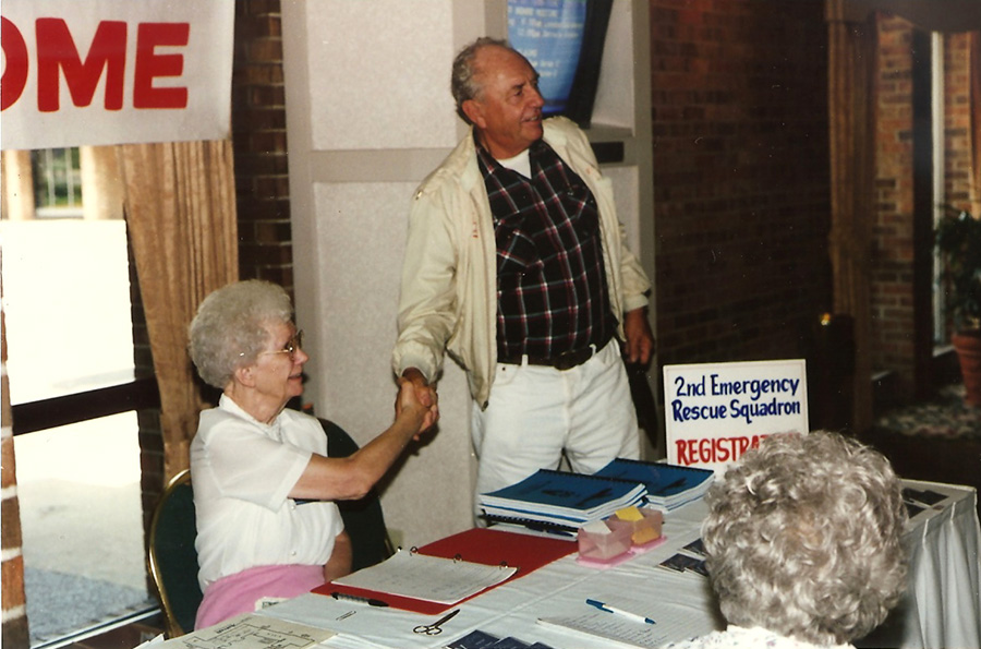 1995 - Second Emergency Rescue Squadron reunion Registration. (L to R) Lois Ortman, Bill Vandervalk (Photo courtesy of Lois & Walt Ortman) Back to Photos page... 1
